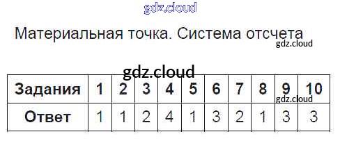 Ответ на задание Материальная точка. Система отсчета Тесты Физика за 9 (девятый) класс Громцева УМК 2017