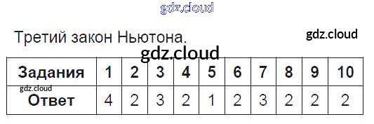 Ответ на задание Третий закон Ньютона Тесты Физика за 9 (девятый) класс Громцева УМК 2017