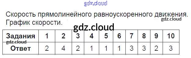 Ответ на задание Скорость прямолинейного равноускоренного движения. График скорости Тесты Физика за 9 (девятый) класс Громцева УМК 2017