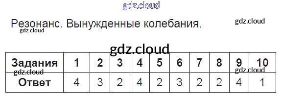 Ответ на задание Вынужденные колебания. Резонанс Тесты Физика за 9 (девятый) класс Громцева УМК 2017