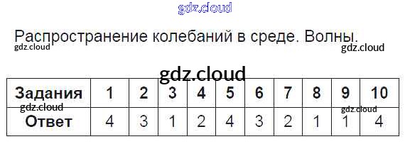 Ответ на задание Распространение колебаний в среде. Волны Тесты Физика за 9 (девятый) класс Громцева УМК 2017