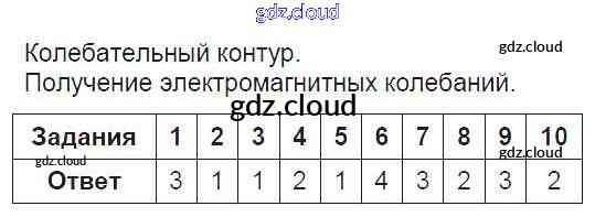 Ответ на задание Колебательный контур. Получение электромагнитных колебаний Тесты Физика за 9 (девятый) класс Громцева УМК 2017