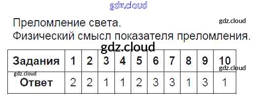 Ответ на задание Преломление света. Физический смысл показателя преломления Тесты Физика за 9 (девятый) класс Громцева УМК 2017