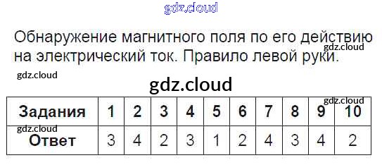 Ответ на задание Обнаружение магнитного поля по его действию на электрический ток. Правило левой руки Тесты Физика за 9 (девятый) класс Громцева УМК 2017