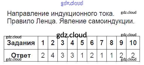Ответ на задание Направление индукционного тока. Правило Ленца Тесты Физика за 9 (девятый) класс Громцева УМК 2017