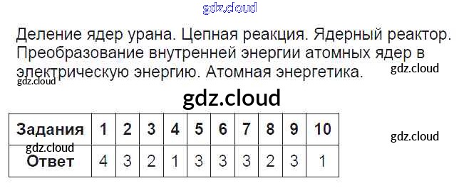 Ответ на задание Деление ядер урана. Цепная реакция. Ядерный реактор. Тесты Физика за 9 (девятый) класс Громцева УМК 2017