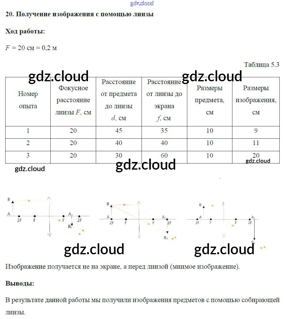 Ответ на задание 20 Тетрадь-практикум Физика за 9 (девятый) класс Артеменков, Белага, Воронцова Сферы 2016