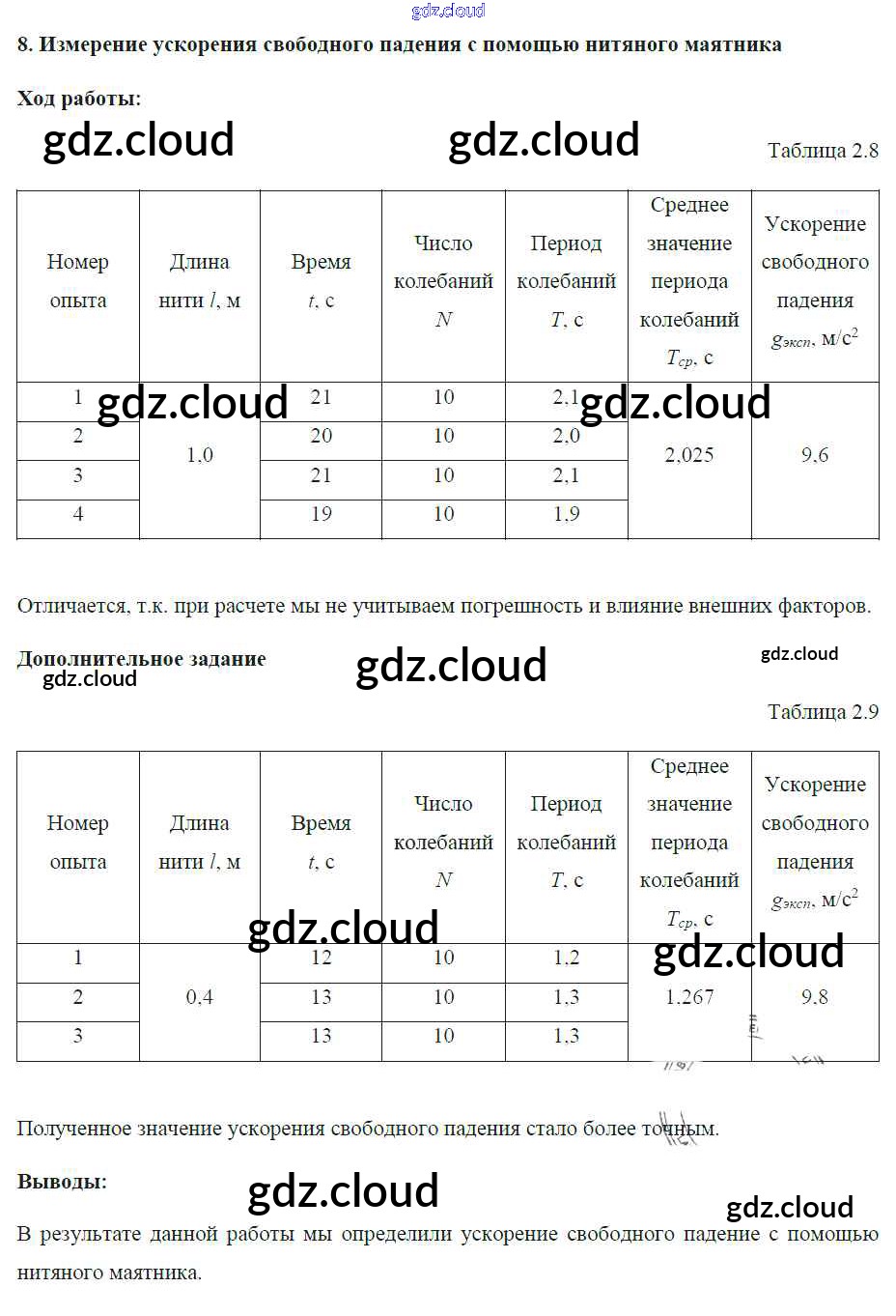 Ответ на задание 8 Тетрадь-практикум Физика за 9 (девятый) класс Артеменков, Белага, Воронцова Сферы 2016
