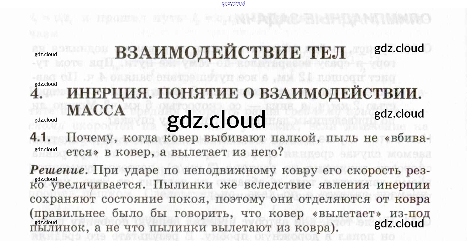 Ответы к теме 4. Инерция. Понятие о взаимодействии. Масса по Физике 7, 8, 9 класс Задачник Генденштейн Илекса