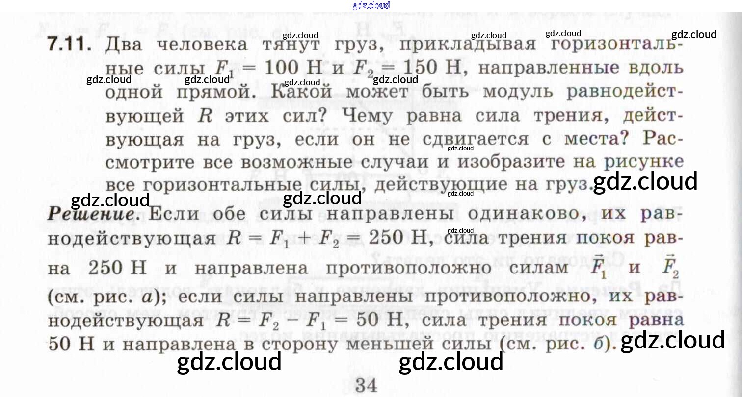 Ответ на задание 7.11 Задачник Физика за 7, 8, 9 (седьмой, восьмой, девятый) класс Генденштейн, Кирик, Гельфгат 2020 онлайн и без номера телефона.