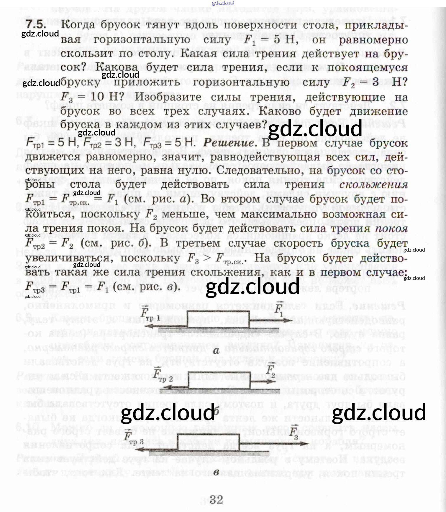 Ответ на задание 7.5 Задачник Физика за 7, 8, 9 (седьмой, восьмой, девятый) класс Генденштейн, Кирик, Гельфгат 2020 онлайн и без номера телефона.