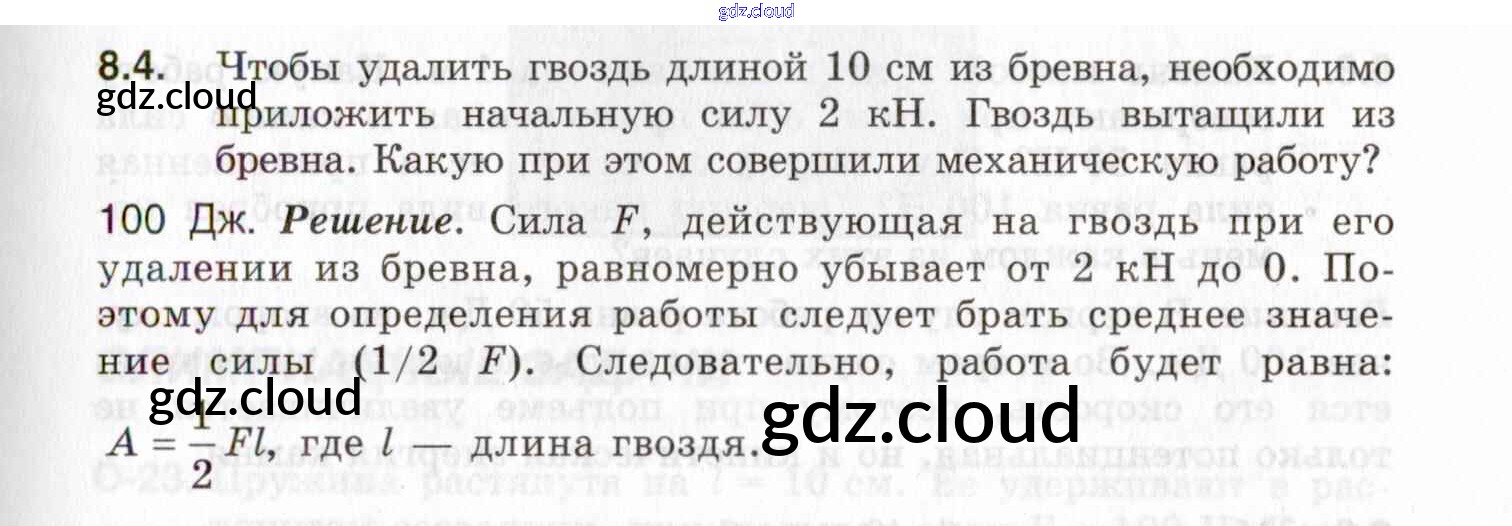 Ответ на задание 8.4 Задачник Физика за 7, 8, 9 (седьмой, восьмой, девятый) класс Генденштейн, Кирик, Гельфгат 2020