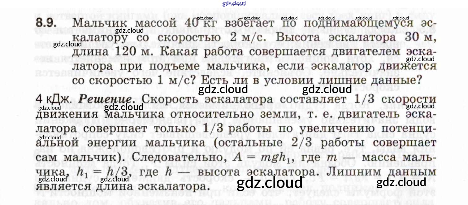 Ответ на задание 8.9 Задачник Физика за 7, 8, 9 (седьмой, восьмой, девятый) класс Генденштейн, Кирик, Гельфгат 2020