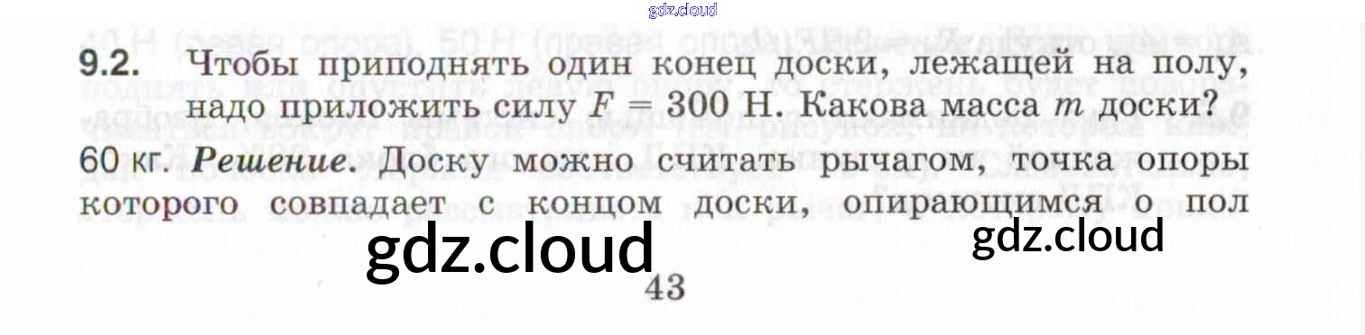 Ответ на задание 9.2 Задачник Физика за 7, 8, 9 (седьмой, восьмой, девятый) класс Генденштейн, Кирик, Гельфгат 2020