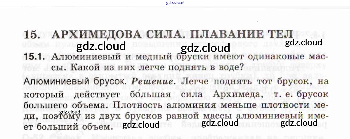 Ответы к теме 15. Архимедова сила. Плавание тел по Физике 7, 8, 9 класс Задачник Генденштейн Илекса