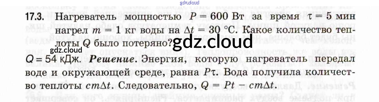 Ответ на задание 17.3 Задачник Физика за 7, 8, 9 (седьмой, восьмой, девятый) класс Генденштейн, Кирик, Гельфгат 2020