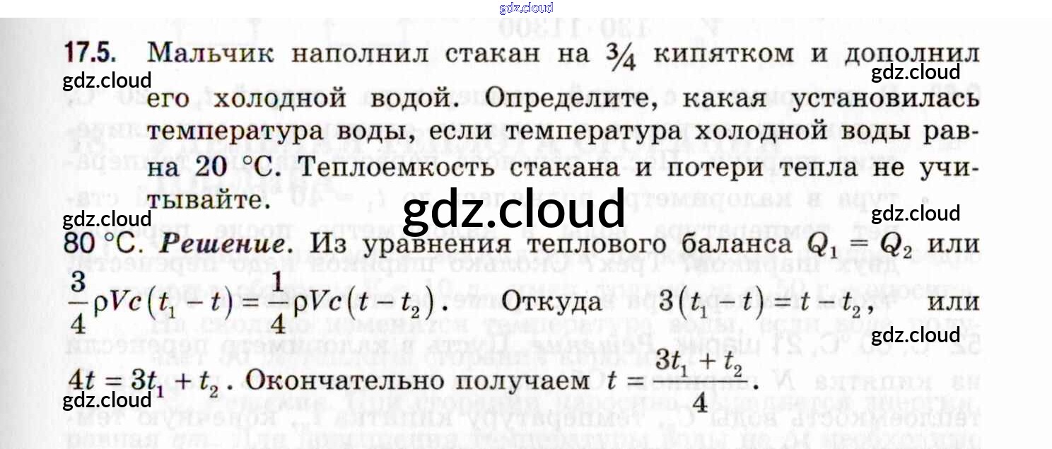 Ответ на задание 17.5 Задачник Физика за 7, 8, 9 (седьмой, восьмой, девятый) класс Генденштейн, Кирик, Гельфгат 2020