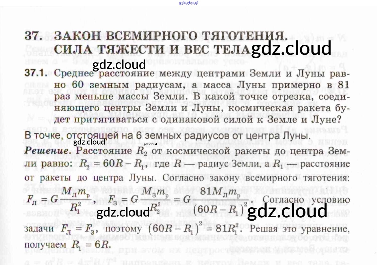Ответы к теме 37. Закон всемирного тяготения. Сила тяжести и вес тела по Физике 7, 8, 9 класс Задачник Генденштейн Илекса