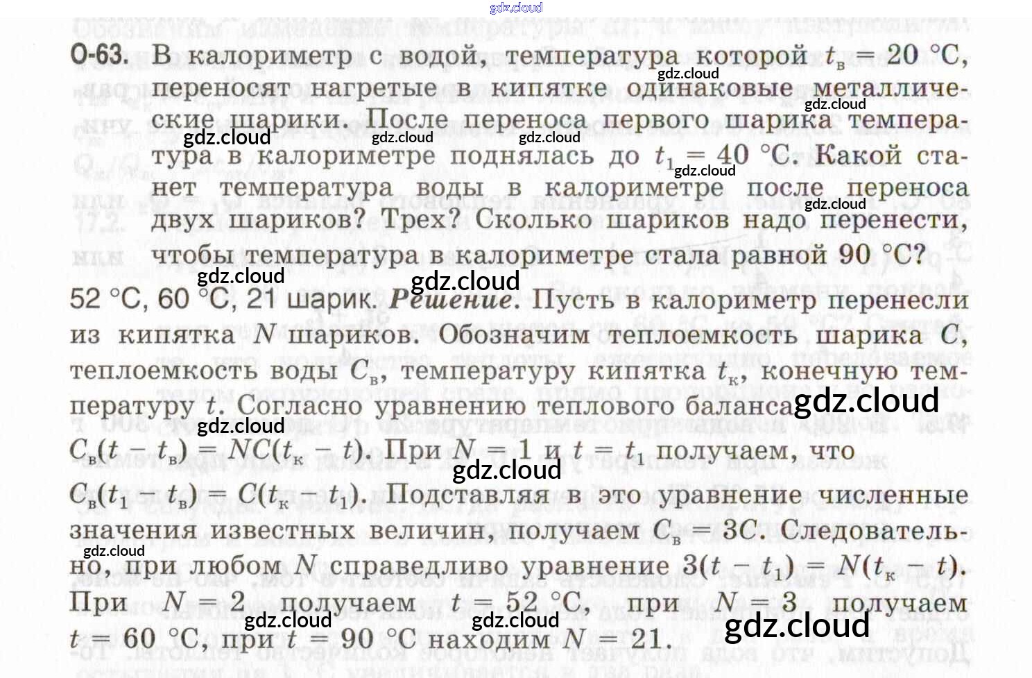 Ответ на задание О-63 Задачник Физика за 7, 8, 9 (седьмой, восьмой, девятый) класс Генденштейн, Кирик, Гельфгат 2020