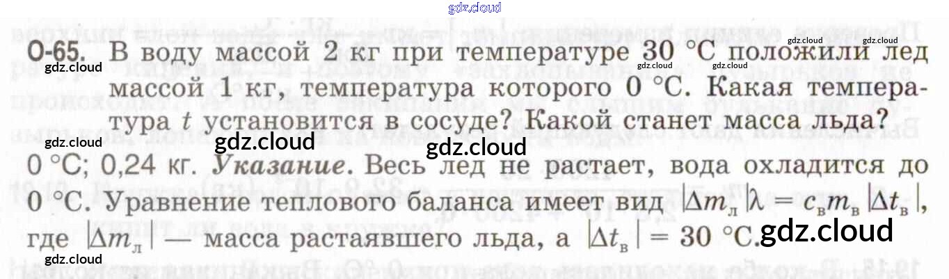 Ответ на задание О-65 Задачник Физика за 7, 8, 9 (седьмой, восьмой, девятый) класс Генденштейн, Кирик, Гельфгат 2020
