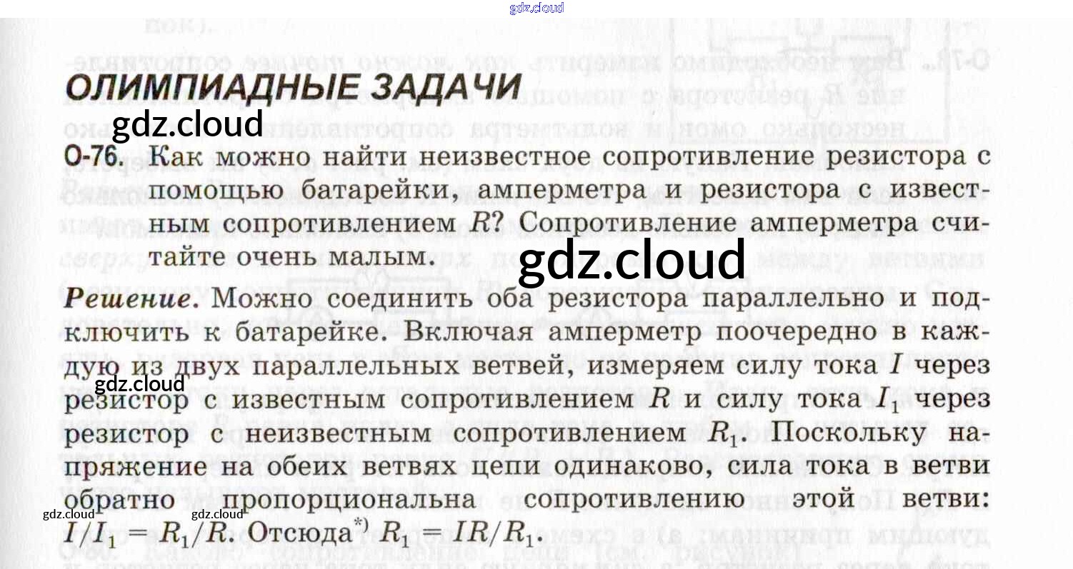 Ответ на задание О-76 Задачник Физика за 7, 8, 9 (седьмой, восьмой, девятый) класс Генденштейн, Кирик, Гельфгат 2020
