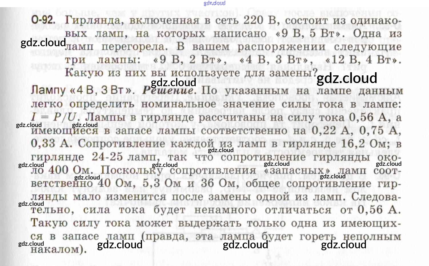Ответ на задание О-92 Задачник Физика за 7, 8, 9 (седьмой, восьмой, девятый) класс Генденштейн, Кирик, Гельфгат 2020