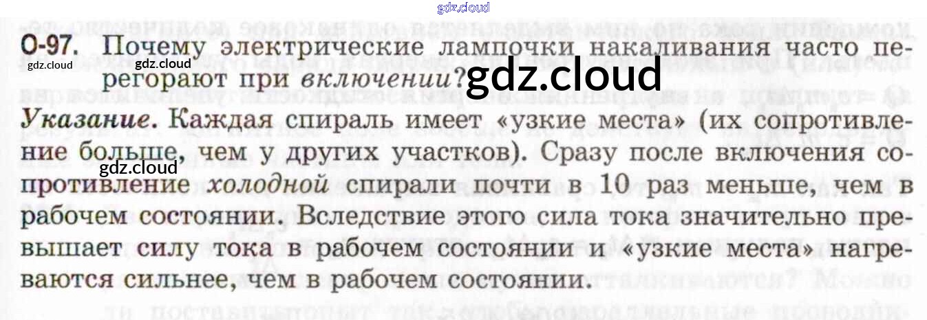 Ответ на задание О-97 Задачник Физика за 7, 8, 9 (седьмой, восьмой, девятый) класс Генденштейн, Кирик, Гельфгат 2020