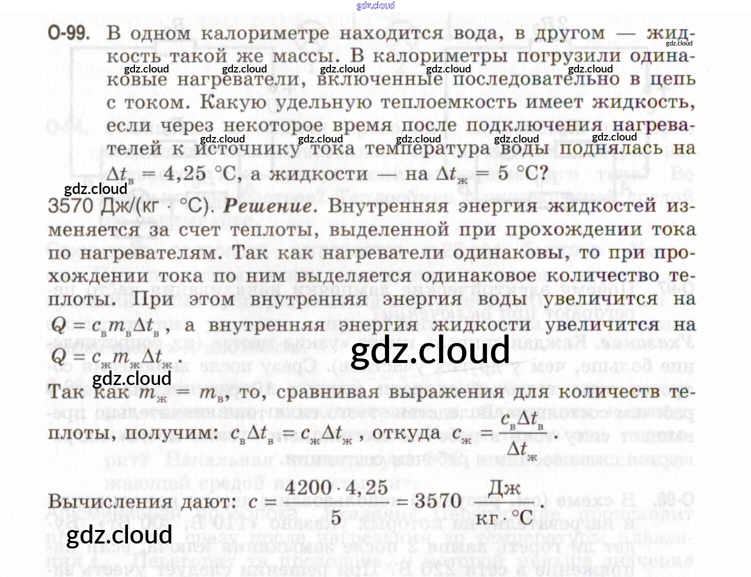 Ответ на задание О-99 Задачник Физика за 7, 8, 9 (седьмой, восьмой, девятый) класс Генденштейн, Кирик, Гельфгат 2020