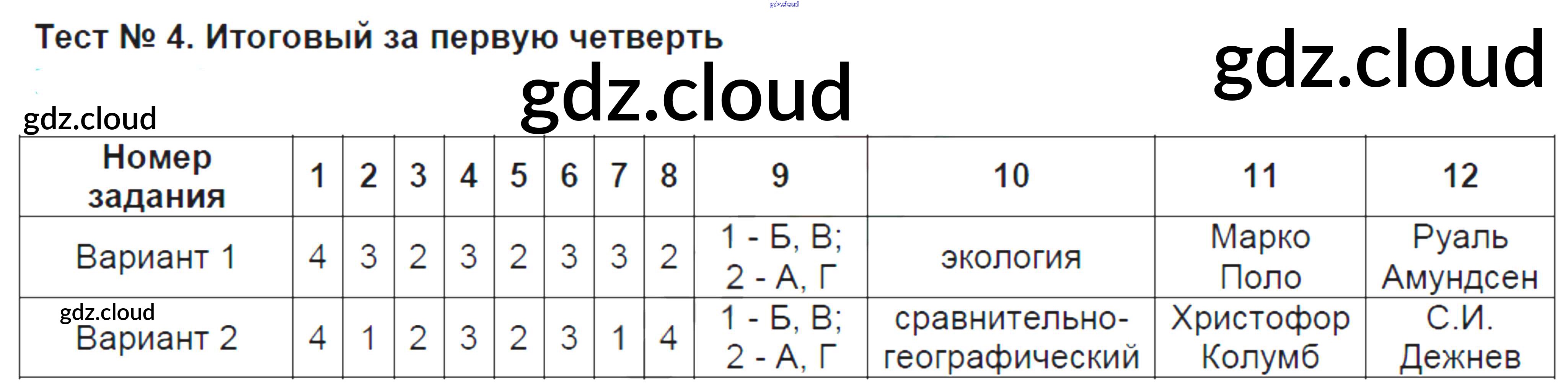 Ответ на задание 4 Контрольно-измерительные материалы (КИМ) География за 5 (пятый) класс Жижина 2018 ФГОС онлайн и без номера телефона.