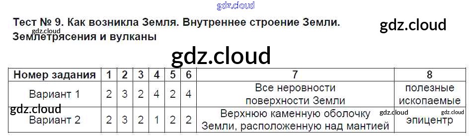 Ответы к Тестам по Географии 5 класс Контрольно-измерительные материалы (КИМ) Жижина ВАКО