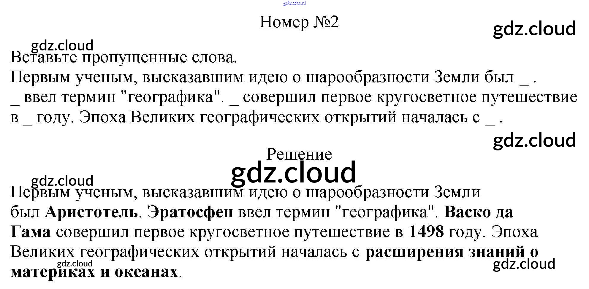 Ответ на задание 2 Рабочая тетрадь География за 5 (пятый) класс Николина УМК 2022 ФГОС онлайн и без номера телефона.