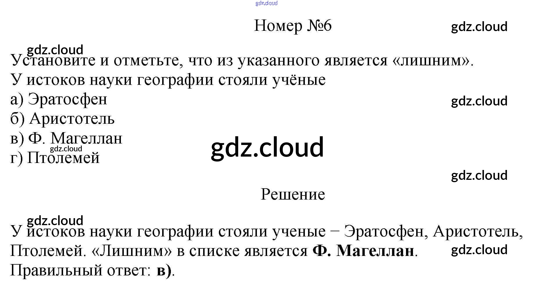 Ответ на задание 6 Рабочая тетрадь География за 5 (пятый) класс Николина УМК 2022 ФГОС онлайн и без номера телефона.
