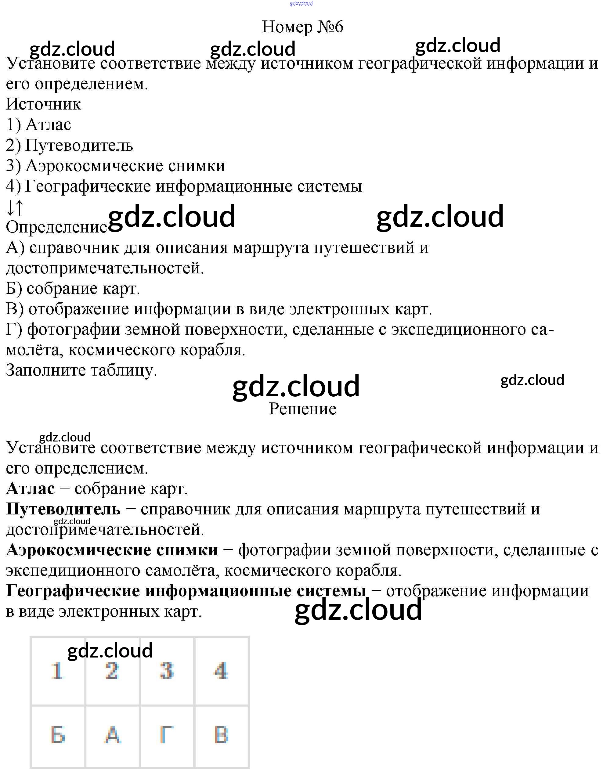 Ответ на задание 6 Рабочая тетрадь География за 5 (пятый) класс Николина УМК 2022 ФГОС онлайн и без номера телефона.
