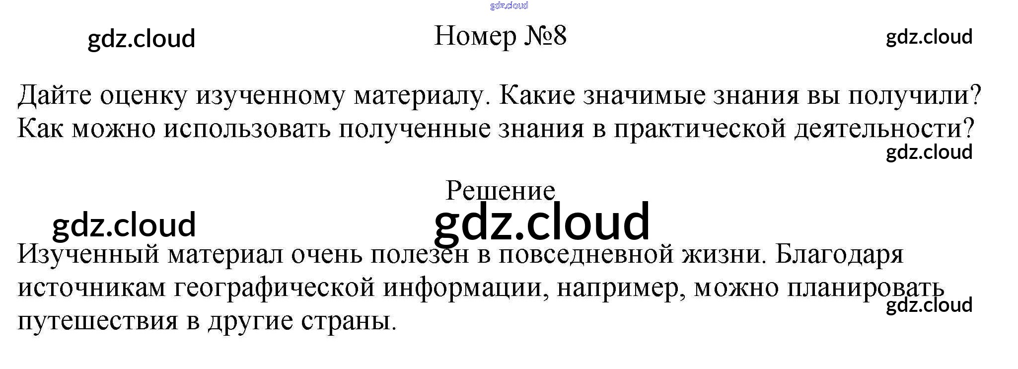 Ответ на задание 8 Рабочая тетрадь География за 5 (пятый) класс Николина УМК 2022 ФГОС онлайн и без номера телефона.