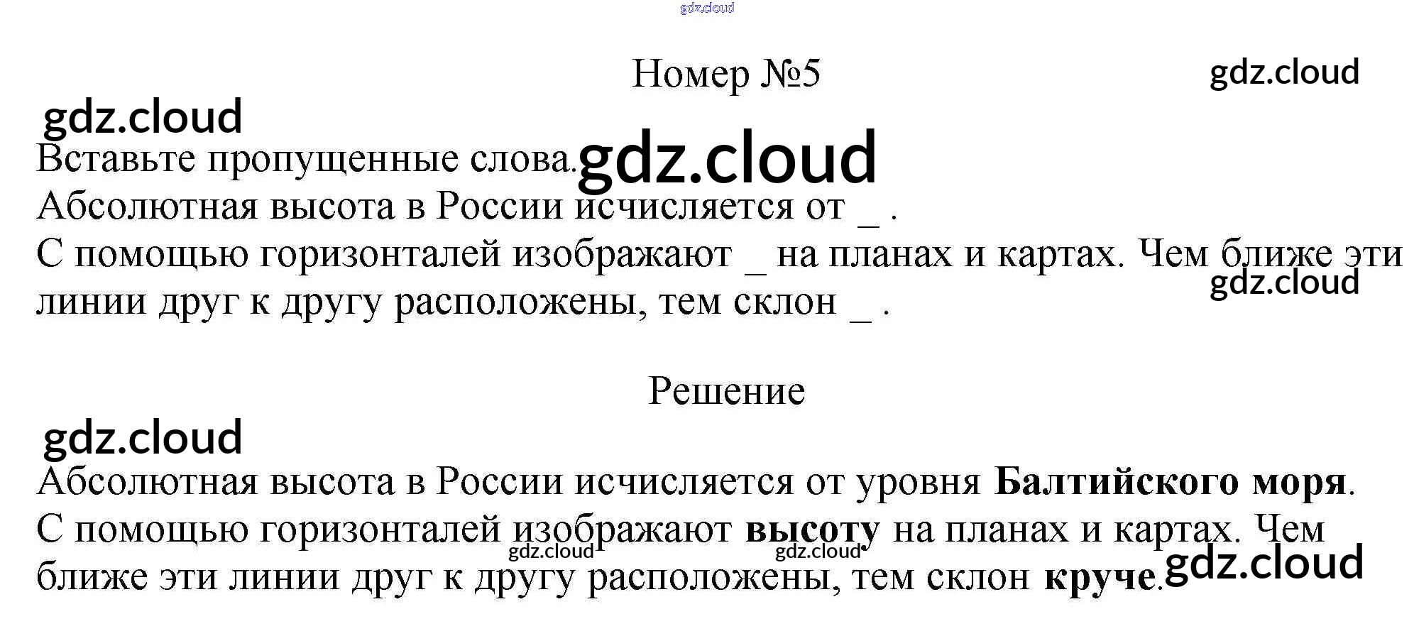 Ответ на задание 5 Рабочая тетрадь География за 5 (пятый) класс Николина УМК 2022 ФГОС онлайн и без номера телефона.