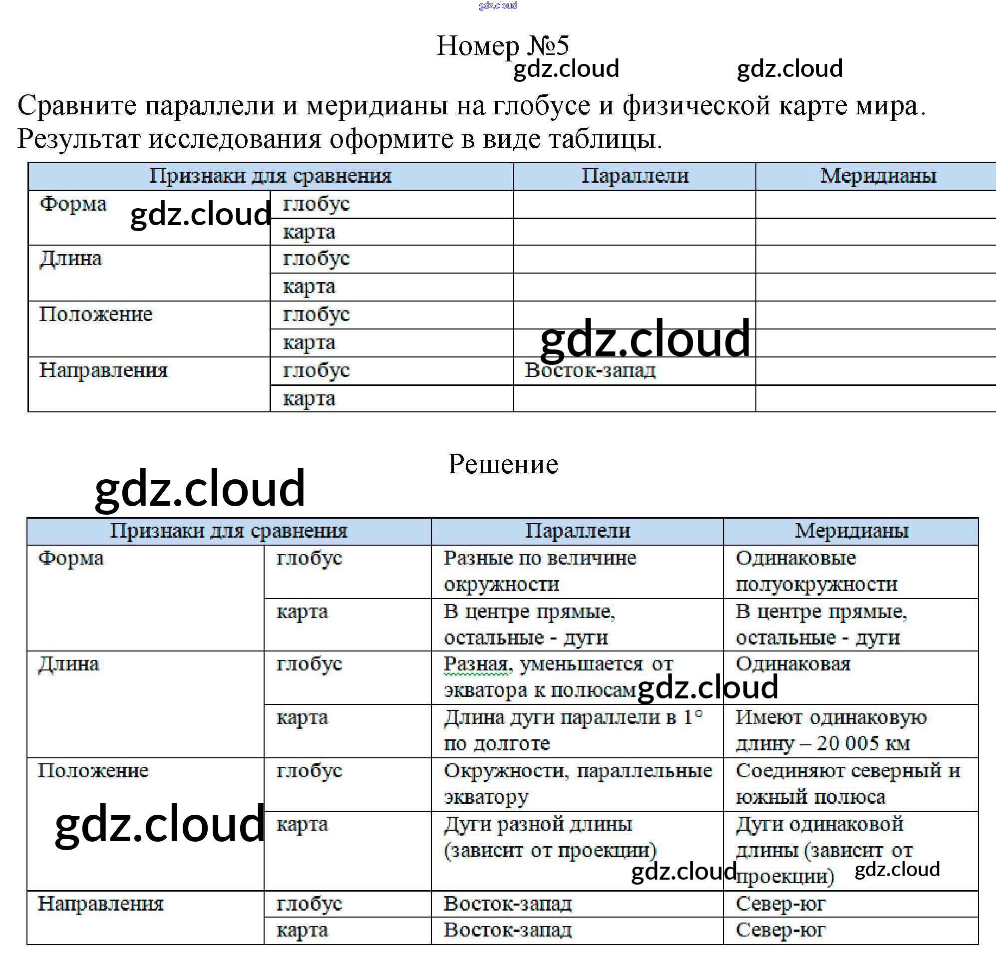 Ответ на задание 5 Рабочая тетрадь География за 5 (пятый) класс Николина УМК 2022 ФГОС онлайн и без номера телефона.