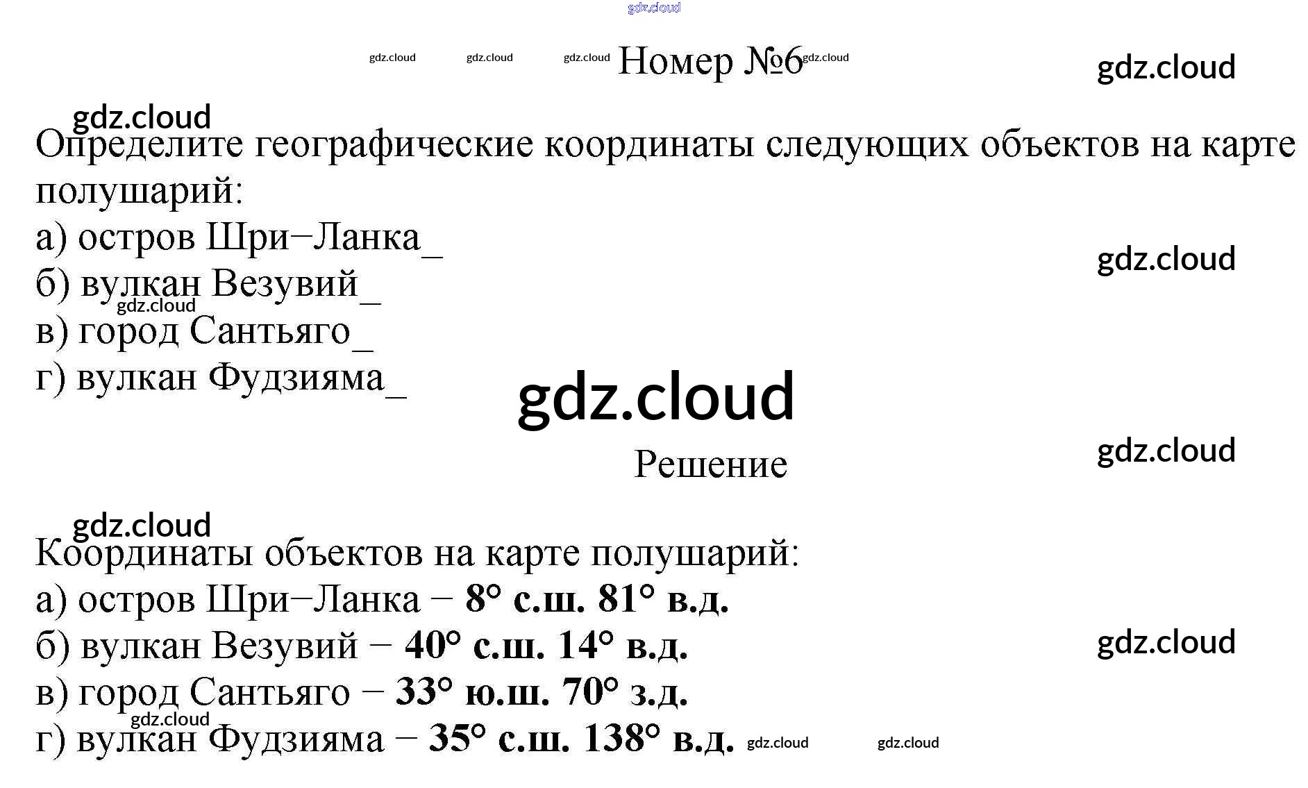 Ответ на задание 6 Рабочая тетрадь География за 5 (пятый) класс Николина УМК 2022 ФГОС онлайн и без номера телефона.