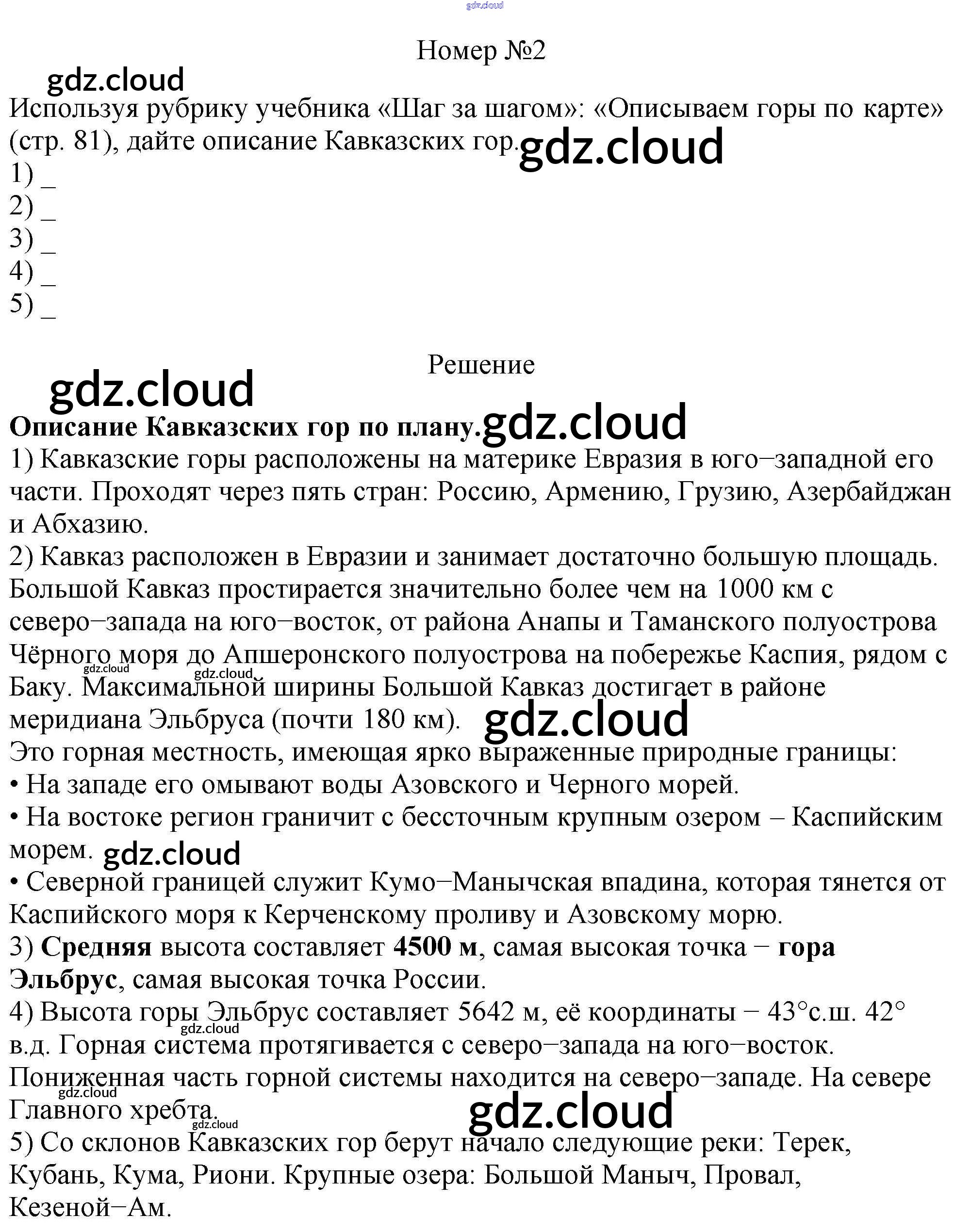 Ответ на задание 2 Рабочая тетрадь География за 5 (пятый) класс Николина УМК 2022 ФГОС онлайн и без номера телефона.