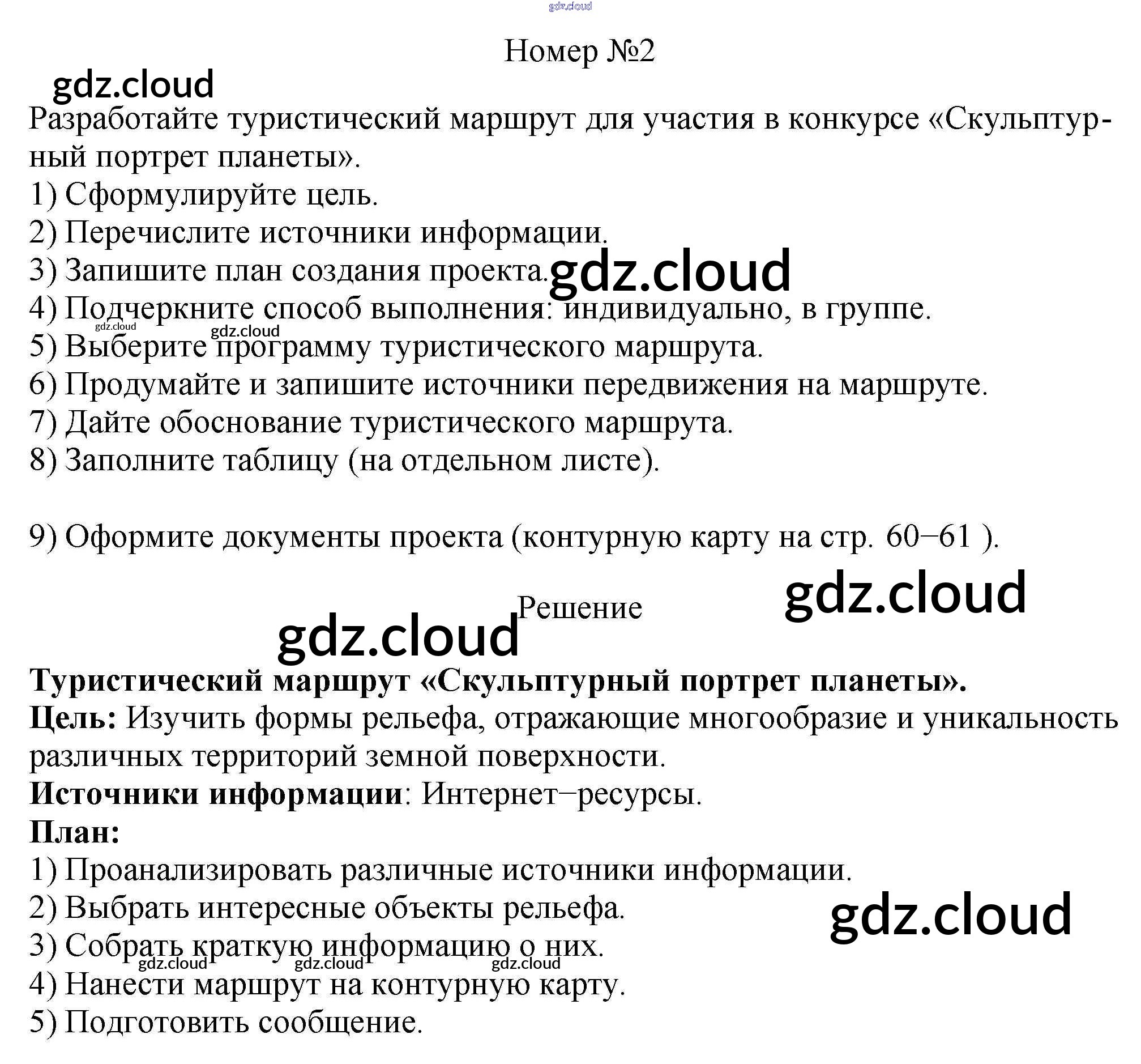 Ответ на задание 2 Рабочая тетрадь География за 5 (пятый) класс Николина УМК 2022 ФГОС онлайн и без номера телефона.