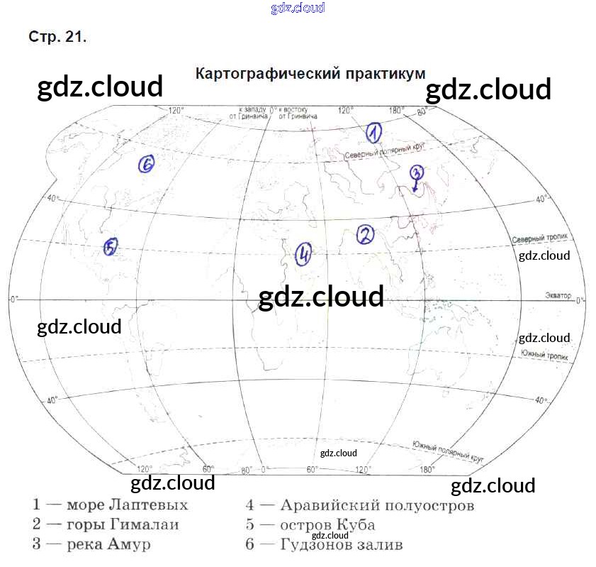 Ответ на задание 21 Рабочая тетрадь География за 5 (пятый) класс Домогацких Инновационная школа 2013 ФГОС онлайн и без номера телефона.