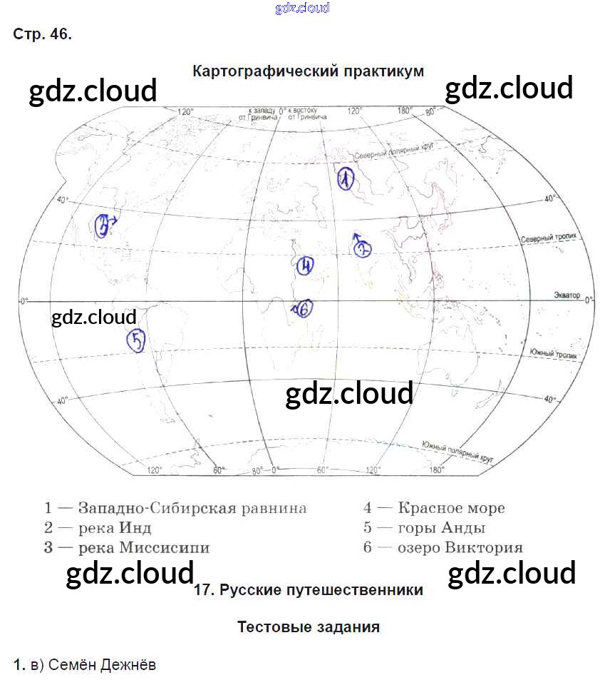 Ответ на задание 46 Рабочая тетрадь География за 5 (пятый) класс Домогацких Инновационная школа 2013 ФГОС онлайн и без номера телефона.