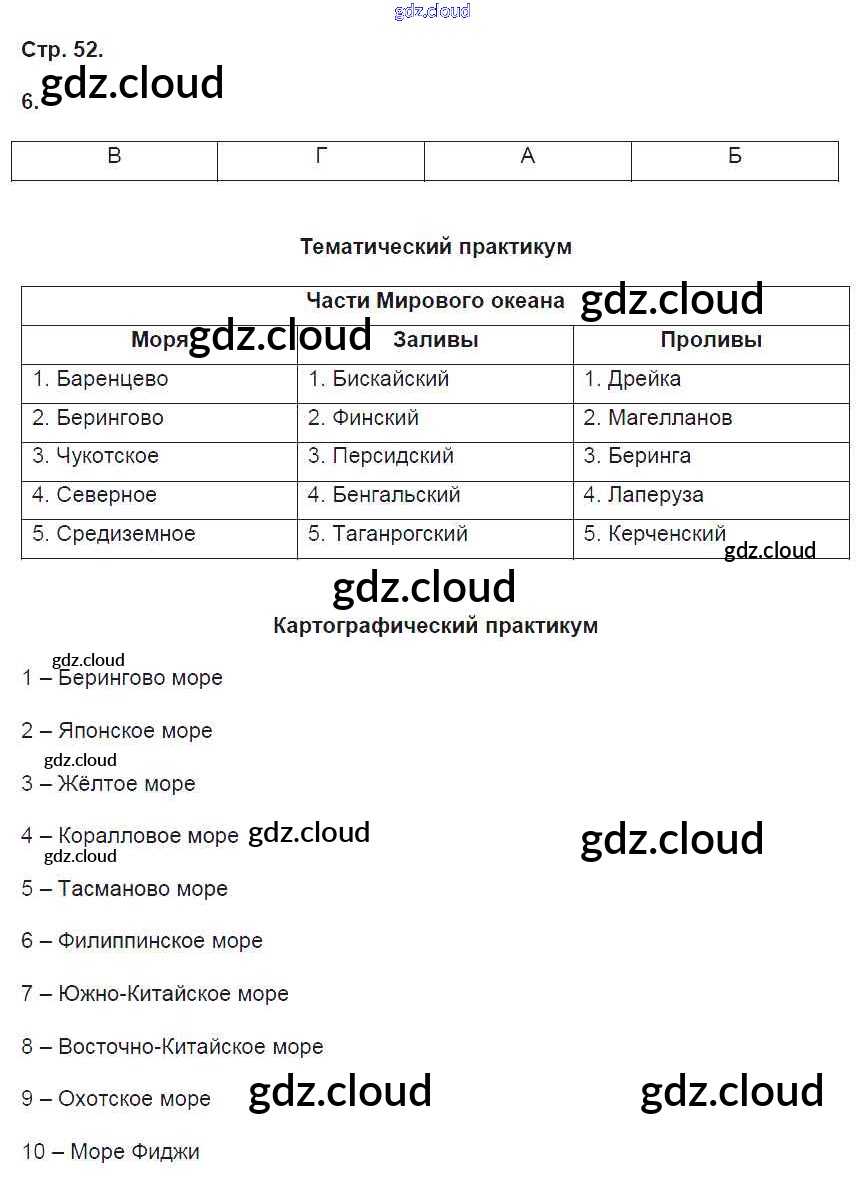 Ответ на задание 52 Рабочая тетрадь География за 5 (пятый) класс Домогацких Инновационная школа 2013 ФГОС онлайн и без номера телефона.
