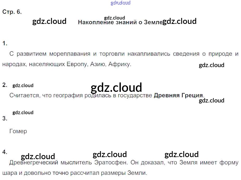 Ответы к страницам по Географии 5 класс Рабочая тетрадь Дронов УМК Дрофа