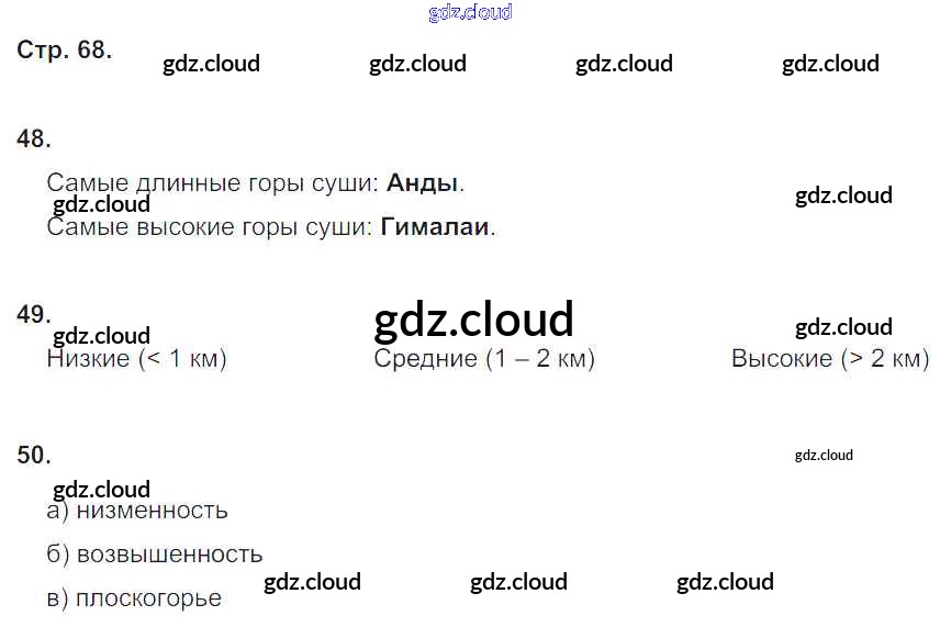 Ответ на задание 68 Рабочая тетрадь География за 5 (пятый) класс Дронов, Савельева УМК 2016 ФГОС онлайн и без номера телефона.