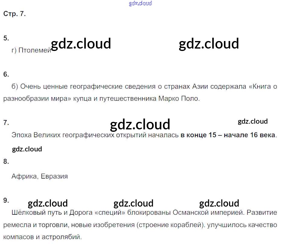 Ответ на задание 7 Рабочая тетрадь География за 5 (пятый) класс Дронов, Савельева УМК 2016 ФГОС онлайн и без номера телефона.