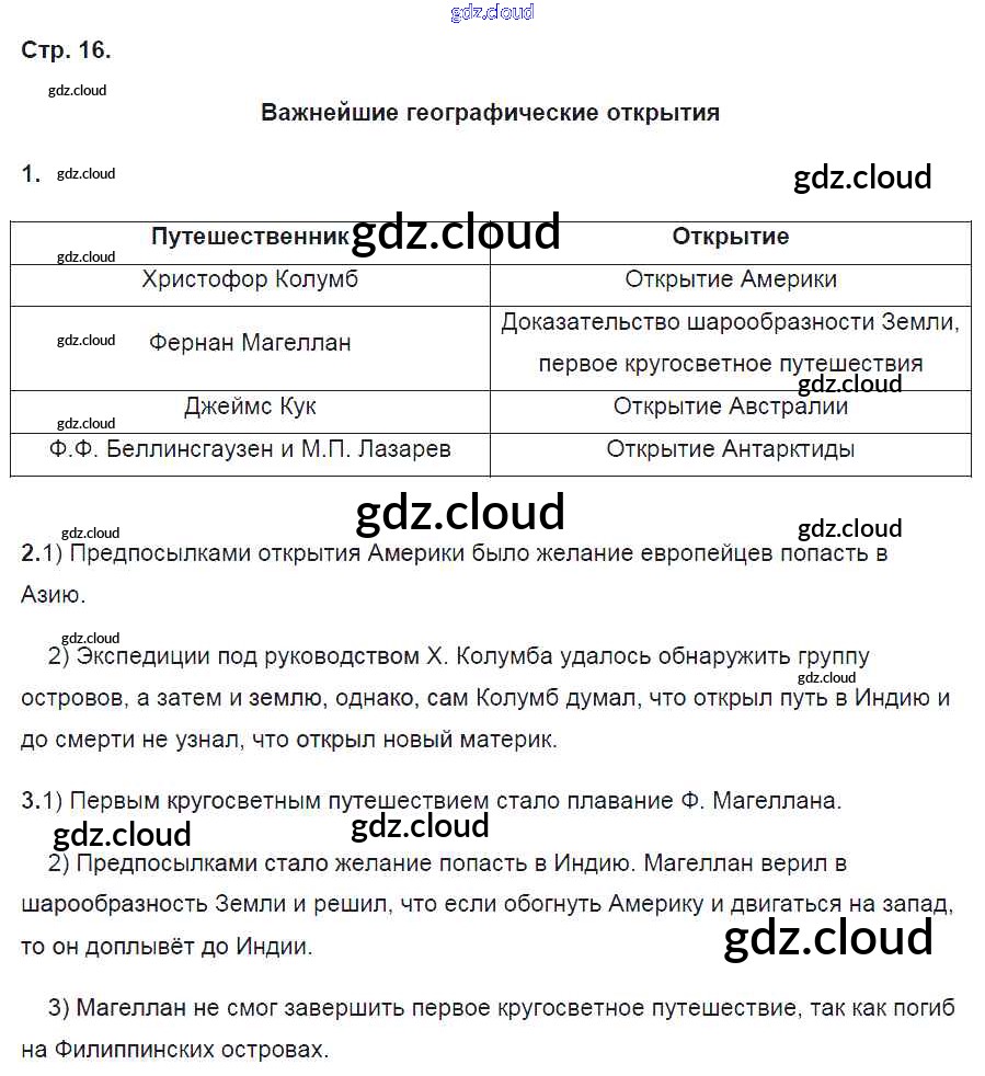 Ответ на задание 16 Рабочая тетрадь География за 5 (пятый) класс Сонин, Курчина УМК 2015 ФГОС онлайн и без номера телефона.