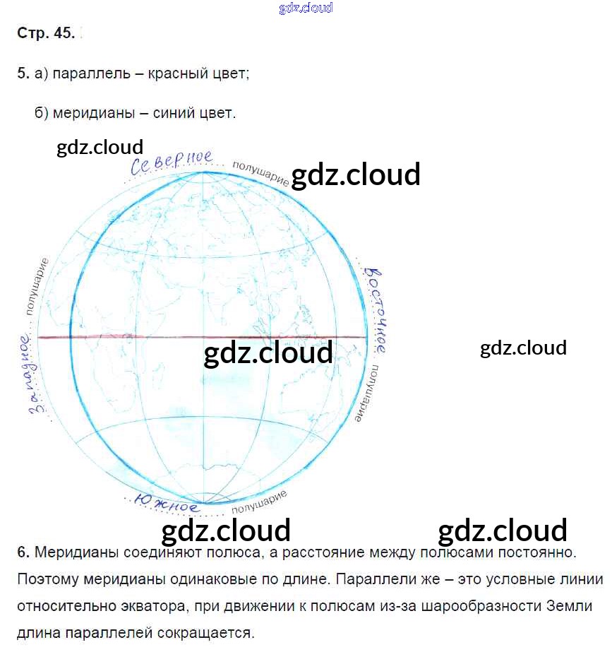Ответ на задание 45 Рабочая тетрадь География за 5 (пятый) класс Сонин, Курчина УМК 2015 ФГОС онлайн и без номера телефона.