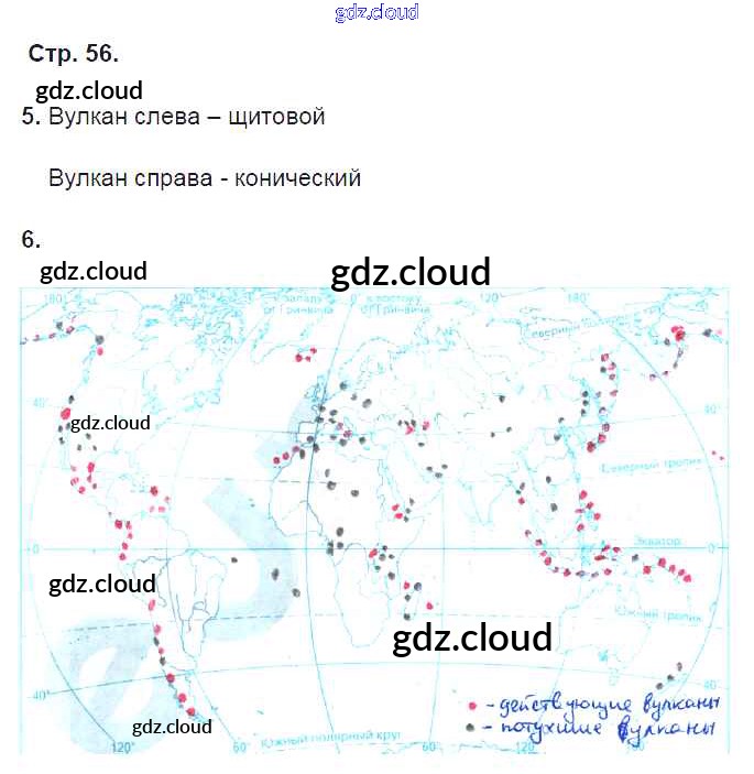 Ответ на задание 56 Рабочая тетрадь География за 5 (пятый) класс Сонин, Курчина УМК 2015 ФГОС онлайн и без номера телефона.