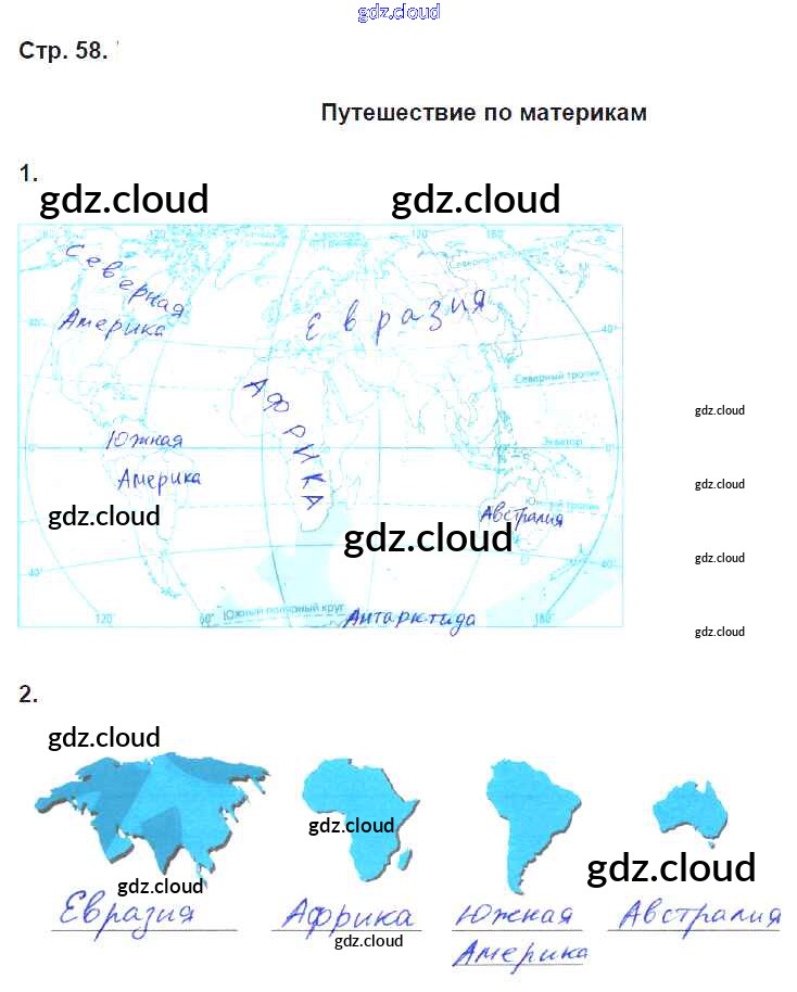 Ответ на задание 58 Рабочая тетрадь География за 5 (пятый) класс Сонин, Курчина УМК 2015 ФГОС онлайн и без номера телефона.