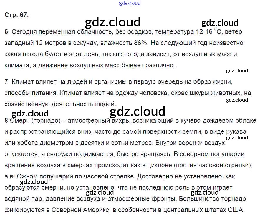 Ответ на задание 67 Рабочая тетрадь География за 5 (пятый) класс Сонин, Курчина УМК 2015 ФГОС онлайн и без номера телефона.